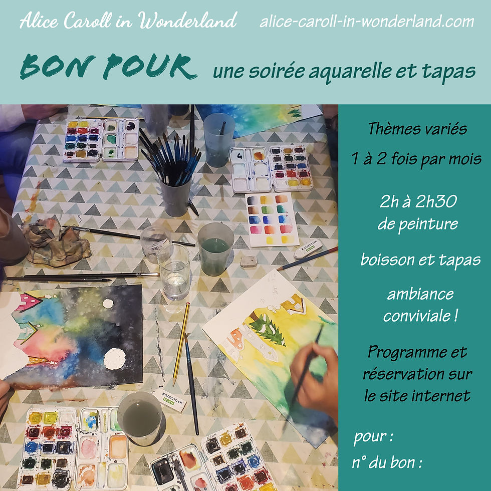 - bons cadeaux pour une soirée aquarelle adultes : Offrez une soirée de détente autour d'un thème à l'aquarelle, d'un verre de vin et de tapas maison !